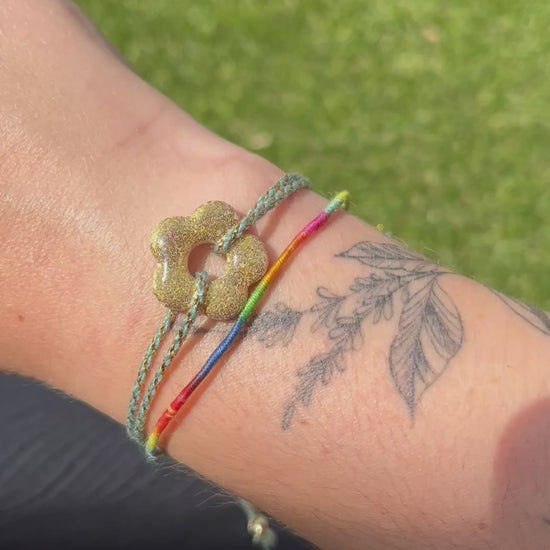 Pour fermer le bracelet il faut tirer sur le deux fils de chaque côtés pour que la boule arrive au centre. Pour sécuriser votre bracelet, vous pouvez venir faire un noeud pour éviter qu’il ne s’ouvre !