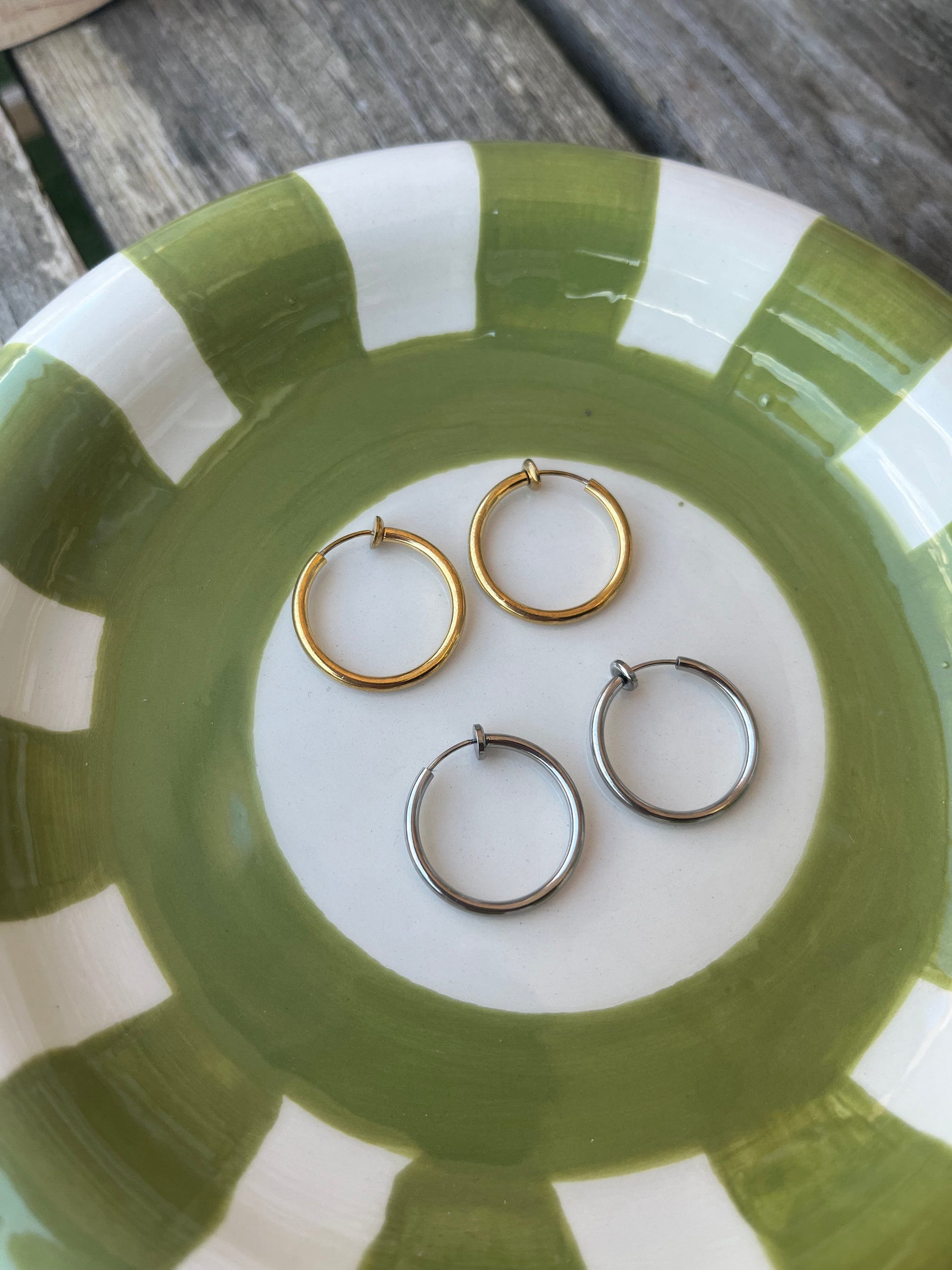 La paire de Créoles Interchangeables à CLIP est en acier argent inoxydable, 24K, ⌀ 18mm