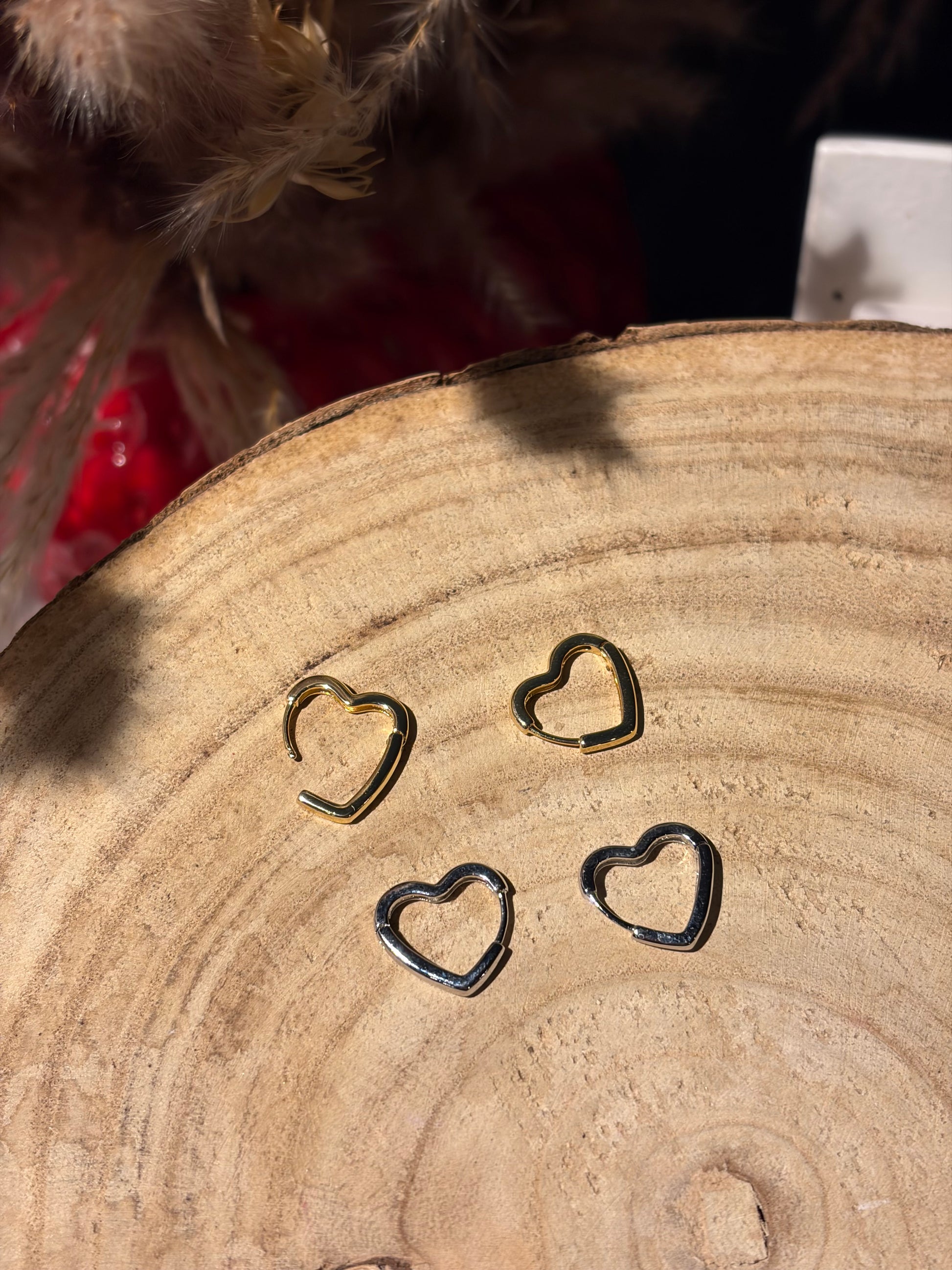 La paire de Créoles Interchangeables cœur en acier argent inoxydable, 24K, ⌀ 16mm