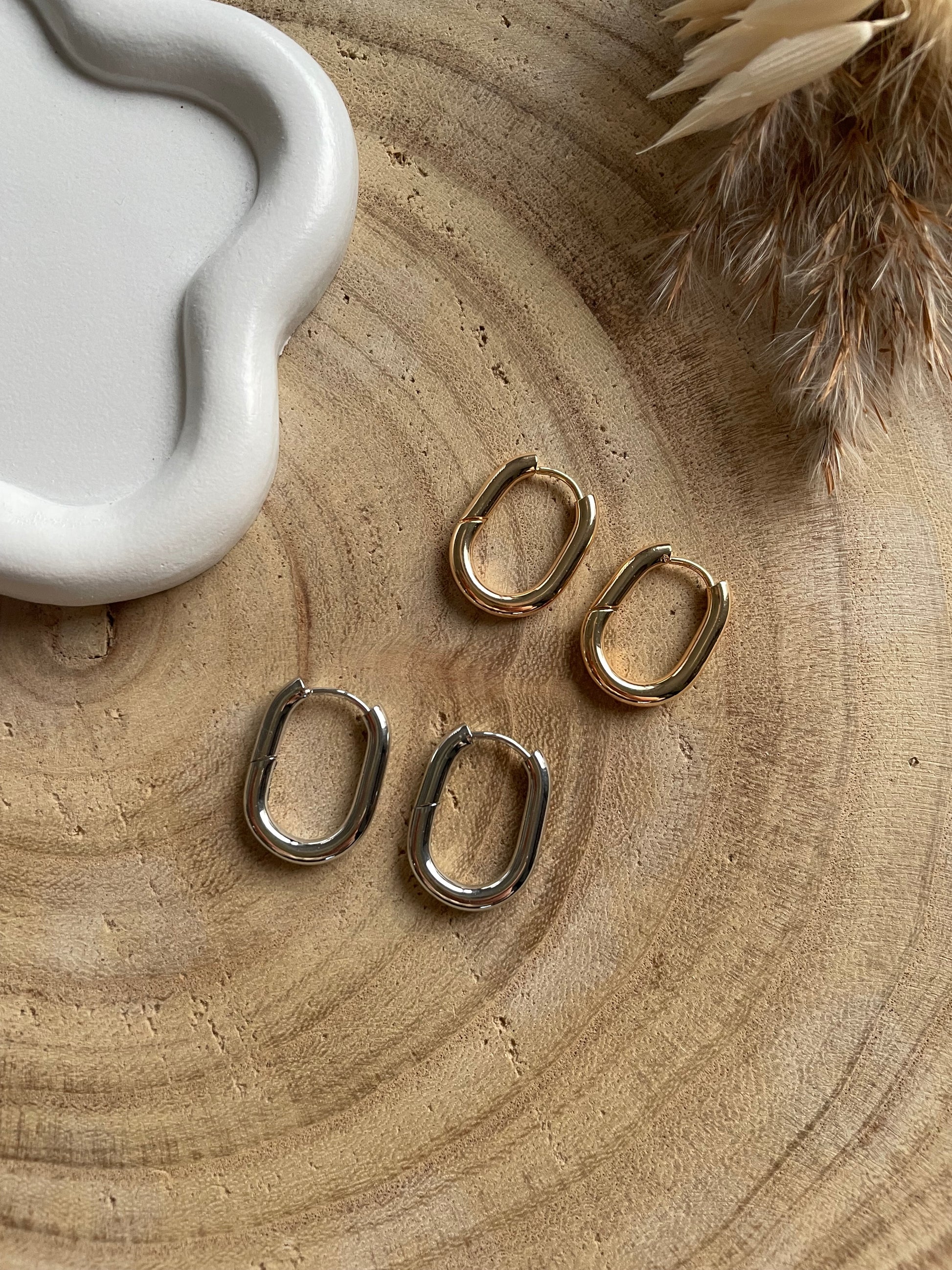La paire de petites Créoles Interchangeables en acier or inoxydable, 24K, forme rectangulaire.