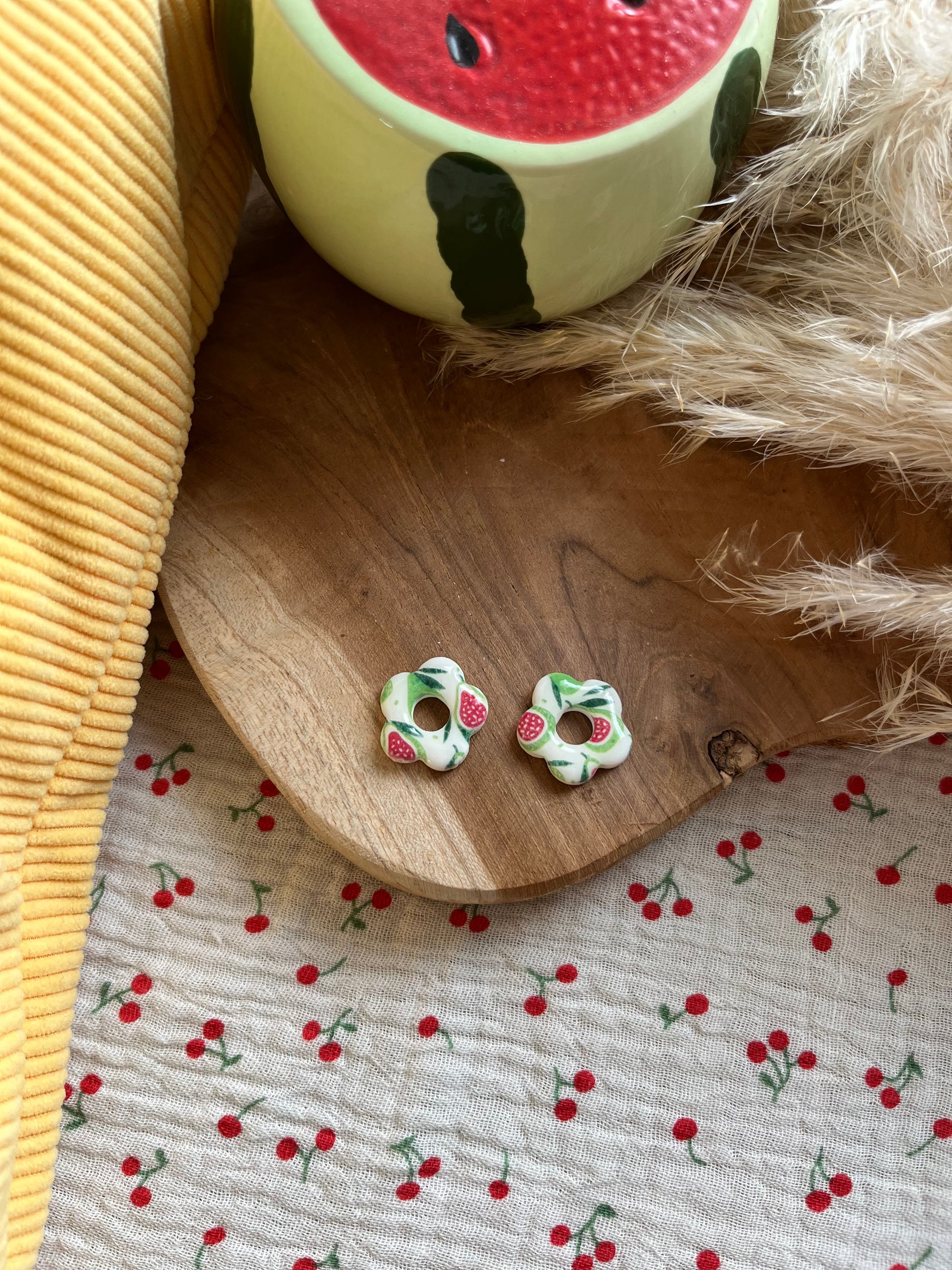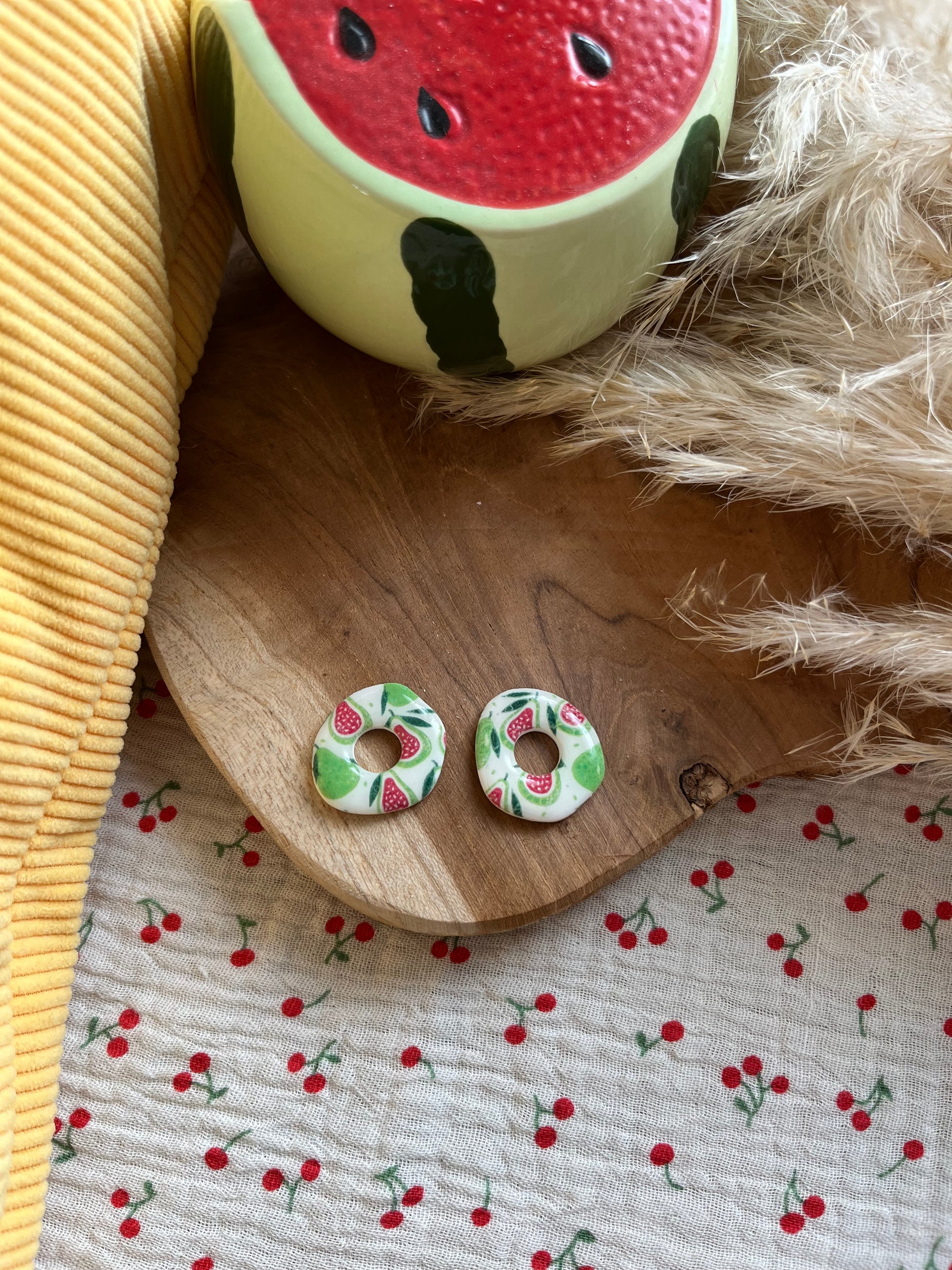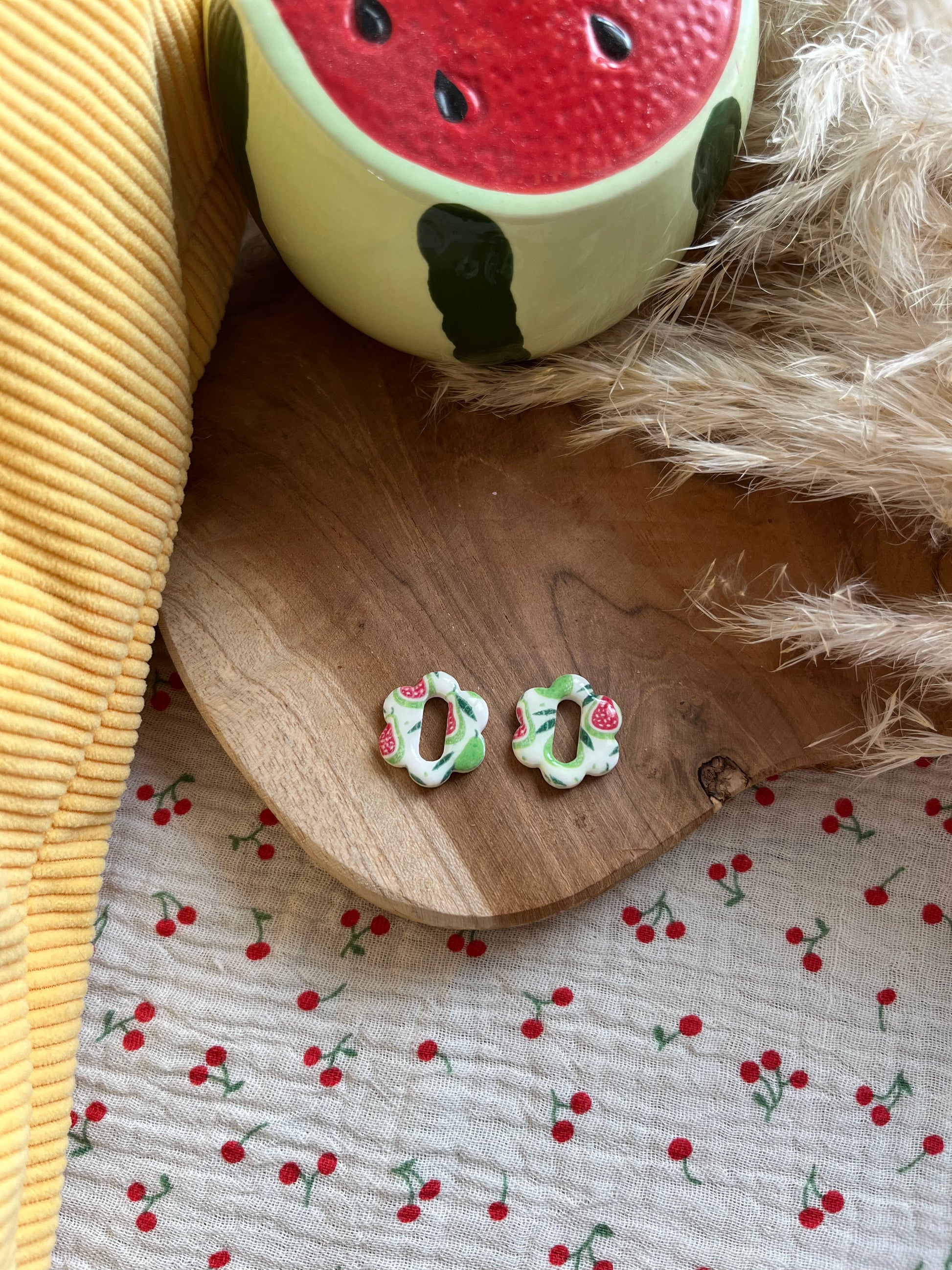 Les lucioles poires sont fabriquĂ©es Ă  la main en pĂąte polymĂšre, vernis d’une rĂ©sine de finition pour un aspect ultra brillant.