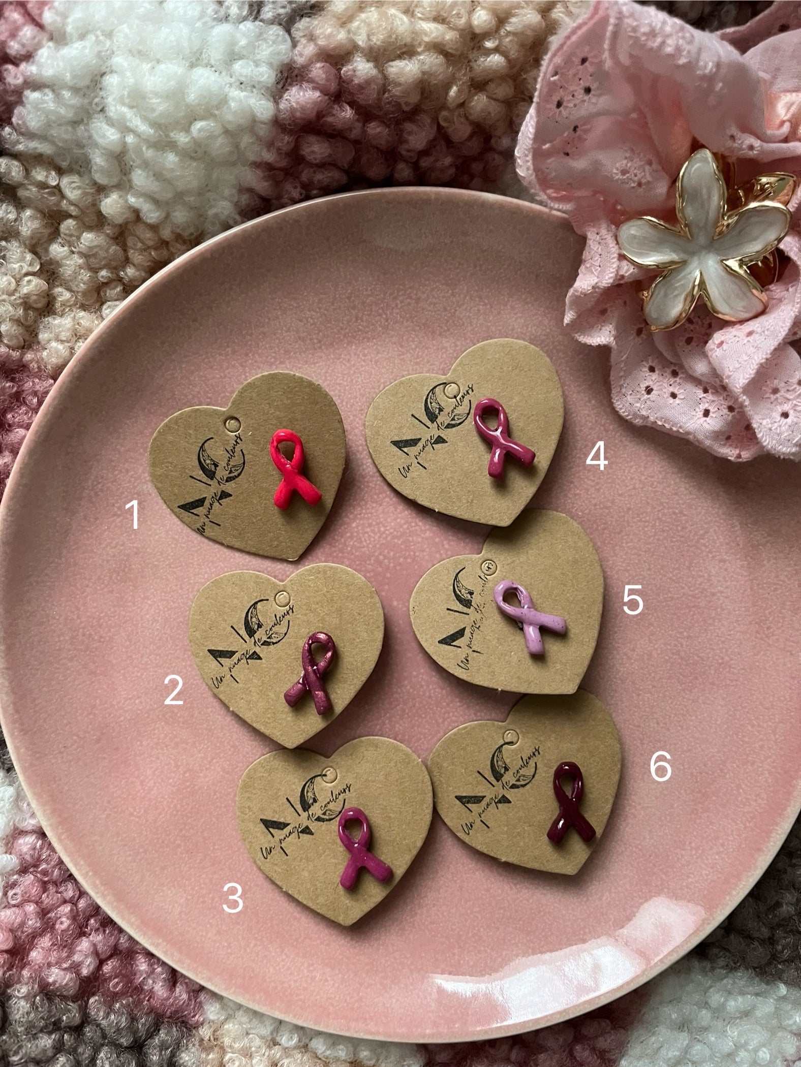 Les Pin's Ruban rose (2cm) sont fabriquées à la main en pâte polymère, vernis d’une finition en résine brillante.